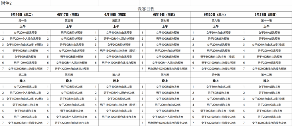 2026年6月16日至21日,杭州奥体中心游泳馆。